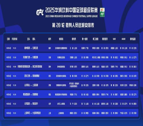 中超第28轮裁判选派:外籍裁判执哨泰山队战上港,马宁回归吹国安